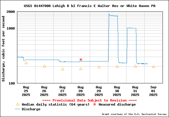 Ideal flow: 200 to 300 cfs @ dam and up to 750 cfs downstream toward Lehighton and Walnutport